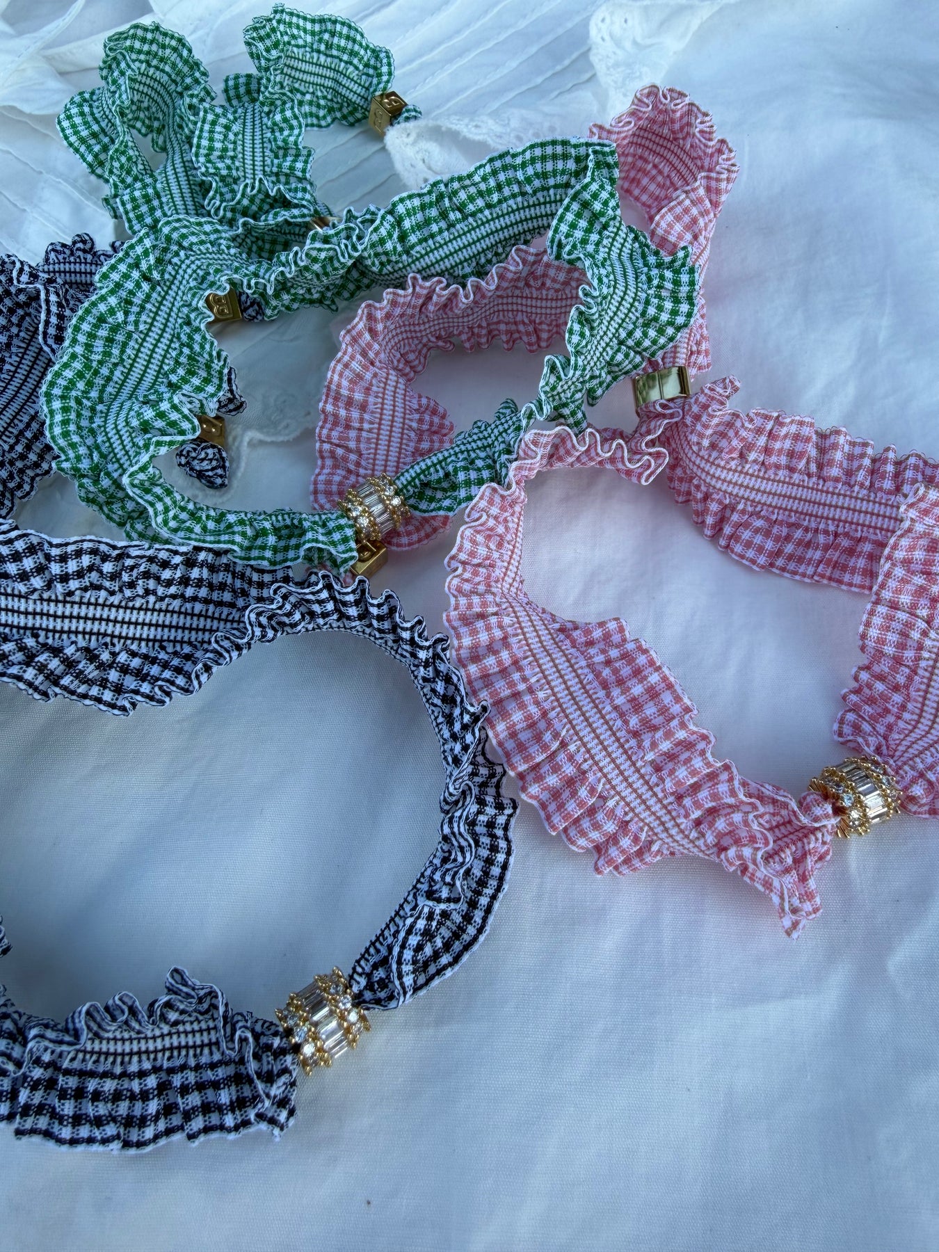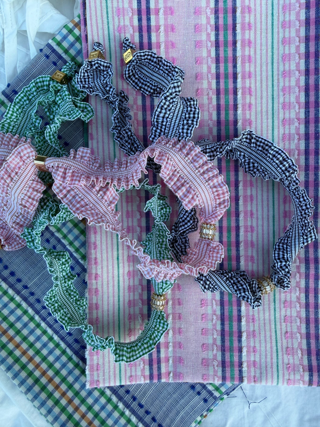 Un Collier textile inspiré du Vichy iconique des années 60.